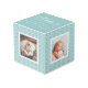 Affichez quatre de vos photos de nouveau-nés préférées dans le style chic avec notre cube photo à motif subtil. Le design comprend un élégant motif d'aqua turquoise pastel entourant chacune des photos de votre bébé garçon ou fille. Personnalisez le panneau supérieur avec le nom du bébé et les statistiques de naissance (date de naissance, poids et longueur).
