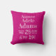 Ajoutez une touche de gentillesse à votre pépinière grâce à cet oreiller personnalisé de statistiques de naissance! Adorable, Personnalisé, Inoubliable ! Avec le nom, la date de naissance, l’heure, le poids et la longueur de votre nouveau-né dans une police joyeux de style esquissé avec un arrière - plan magenta personnalisable. Le dos montre un motif rayé amusant pour une touche de finition joyeuse. Un garde-robe confortable et un cadeau de baby shower parfait!
