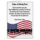 Le poème de la Statue de la Liberté d'Emma Lazare au-dessus d'une image du drapeau américain et d'une silhouette réfléchie d'une multitude de personnes, célébrant les Etats-Unis comme une nation d'immigrants et de réfugiés. C'est ce qui a rendu l'Amérique grande. "Donnez-moi vos fatigués, vos pauvres, vos masses serrées qui aspirent à respirer sans rien, les misérables déchets de votre rivage grouillante. Envoyez-les, les sans-abris, la tentation-tost à moi, je lève ma lampe à côté de la porte d'or !"