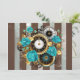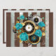 Steampunk Clock and Turquoise Roses on Striped