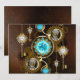 Turquoise lenses with antique watch with brass gears and golden keys on rusty, brown background. Steampunk style.