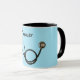 Le stéthoscope avec une tasse à ringard personnalisée est pour ceux qui font partie de la profession médicale. Médecins, infirmières et autres professionnels de la santé. Bon cadeau à donner au nouveau diplômé. Cette tasse peut être changée en n'importe quelle variété de styles. Modifiez l'arrière - plan de couleur et le nom. Même l'image du stéthoscope peut être agrandie ou réduite ou changer pour votre propre image.
