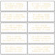 10 Nom de l'invité individuel Adresse Mariage Gold Stickers dispose de 10 autocollants avec votre nom d'invité individuel et votre adresse sur chaque autocollant en or or de verge d'or sur un arrière - plan blanc. Parfait pour Noël et Cartes de fin de année, invitations à des fêtes d'anniversaire, invitations à des mariages, baby showers, douches nuptiales, cartes de remerciement et envois de courrier de bureau. Modifiez simplement le texte dans les zones de texte fournies. Voir ©Evco Studio pour d'autres couleurs et designs https://www.zazzle.com/store/evcostudio
