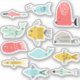 Poisson : collection de 12 poissons différents dans les tons rouge, bleu, vert, jaune et gris.