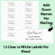 12 individually customizable laser cut, transparent address labels on clear self-adhesive stickers. These are slightly larger than return address labels so that they're sized correctly for addressing letters.