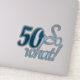 50 Alors quel Script Positive 50e Anniversaire Citation autocollant. Idéal pour une femme ou un homme qui fête son 50e anniversaire et qui a un sens de l'humour. L'expression est en typographie dans les couleurs bleu foncé et brillant. Décorez vos cadeaux et plus encore avec ces étiquettes.