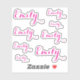 Sticker 8 Custom Name Word, 4-5 letters Elegant Script Pnk