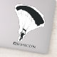 Sticker de contour de parachutisme avec texte facultatif, disponible en différentes tailles.