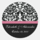 Notre damas noir avec un Honeysuckle Pink accent autocollants de mariage sont la touche parfaite pour vos invitations de mariage, notes de remerciement, wedding shower, ou la douche nuptiale faveurs. Objets correspondants disponibles dans notre boutique @ www.celebrateitweddings.com. Cet article est disponible dans une variété de combinaisons de couleurs!