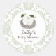 Baby shower merci autocollant ou étiquette de faveur avec deux poires avec feuille dans un nid de brindilles. Les couleurs naturelles rustiques du marron et du vert donnent un thème vintage à un baby shower jumeau.