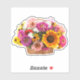 4" x 4" autocollant vinyle taillé sur mesure avec une image de dahlias violet, marguerites jaunes, impatiens blancs et roses, fleurs roses non identifiées, dahlia rouge et tournesol arrangé dans un panier en osier. Voir la balise de faveur correspondante. Voir l’ensemble de la collection Sticker de la Fête des Mères dans les INVITATIONS | Section Stickers & Étiquettes.