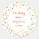 Sticker Baby shower avec des points de confetti colorés motif en vert, rouge et jaune.