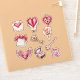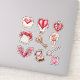 Cette feuille de dix autocollants vinyle découpés sur mesure comporte un charmant thème de coeur et d'amour de la Saint-Valentin, parfait pour ajouter une touche de romance à divers projets. Les décors comprennent une montgolfière en forme de coeur, un bouquet de fleurs, une clé dorée aux détails complexes du coeur, une lettre d'amour avec un coeur rouge à l'intérieur, une serrure en forme de coeur, un bocal rempli de coeurs, un coeur aux ailes d'anges, un coeur à la flèche de Cupidon, un anneau en forme de coeur dans une boîte, une carte blanche ornée de roses. Ces autocollants sont idéaux pour scrapbooking ou journaliser, permettant aux utilisateurs d'embellir leurs pages avec des symboles d'amour et d'affection. De plus, ils peuvent être utilisés pour décorer des cartes de voeux, des enveloppements cadeaux, des étuis téléphoniques ou des planificateurs, ce qui les rend polyvalents pour toute entreprise créative. La palette douce et pastel et les illustrations délicates font de ces autocollants une touche romantique ou fantaisiste à tout projet artisanal.