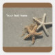 Beau autocollant de la nature de plage étiquettes dans une image pittoresque avec deux étoiles de mer sur le sable et le modèle texte que vous pouvez customiser en ligne. Conçu pour un événement sur le thème de la plage, une fête, ou les utiliser comme autocollants de remerciement mariages.