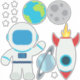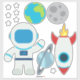 Thème Espace mignon Astronaut, Rocket ship, planètes, lune et étoiles, autocollants vinyle.