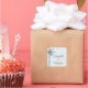 Des autocollants Starfish pour un couple qui se marie. Bleu clair avec un groupe d'étoiles de mer, choisissez rond ou forme carré. Ajoutez les prénoms de la mariée et du marié en caractères marron.