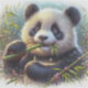 Sticker Adorable Ours De Panda Mangeant Bambou