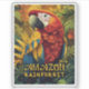 Affiche animée de style dessin animé avec un macaw dans la forêt amazonienne luxuriante. Des formes simples et des lignes audacieuses créent un décor amusant et parfait pour la maison.
