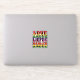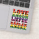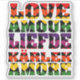 Aimez-vous les autocollants qui ont un message positif? Cet autocollant dit l'amour en anglais, français, néerlandais, suédois et italien avec un motif arc-en-ciel.