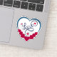 Un Amour Drôle. Un autocollant d'amour mignon et drôle pourrait présenter un couple de dessins animés avec des coeurs surdimensionnés pour les têtes, frappant des poses stupides tout en tenant la main. Au-dessus d'eux, une légende ludique comme "Je suis fou de toi !" ajoute une touche humoristique, tandis que des petits gribouillis de chocolats et de fleurs les entourent, renforçant l'ambiance fantaisiste. Parfait pour partager ces moments doux et légers dans une relation !