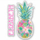 Ce sticker en vinyle preppy présente un joli ananas tropical vert et rose. Personnalisez avec votre choix de nom ou de texte spécial. Amusant pour les faveurs de fête et les sacs cadeaux personnalisés.