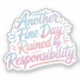 A beautifully hand-lettered typography design with a humorous, sarcastic quote: "Another Fine Day Ruined by Responsibility." Features a vibrant pastel color gradient, perfect for anyone who hates adulting, the 9 to 5 grind, or just loves a funny, relatable quote. Great for office mugs, laptop skins, and unique gifts!