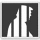 Anti trump sticker for friends to not vote for the felon. Black and white silhouette of Trump behind bars in jail. Anti Trump art to stop Trump in 2028!