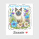 Sticker Aquarelle Ai personnalisée Chat siamois en Fleurs