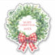 Ce sticker vinyle de Noël personnalisé comporte une couronne verte avec arc en vichy rouge. Personnalisez avec votre choix de texte et de date spéciaux. Parfait pour les sacs cadeaux et les faveurs de fête.