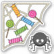 C'est l'illustration d'une araignée mignonne mais déplaisante qui attrape des bonbons colorés et de la sucette sur sa toile. Ce dessin animé est une bonne idée cadeau pour les enfants et les adultes qui aiment Halloween.