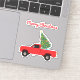 Décor de Noël à emporter...Joli design d'art de Noël. Illustration adorable d'un pick-up rouge qui ramasse un sapin de Noël. Idéal pour les décorations de Noël, vêtements et cadeaux.
