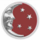 Sticker dans un classique Art Déco Moon et Stars design en argent brossé avec un look émail, arrière - plan rouge chinois foncé