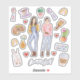 Feuillet autocollant artiste amusant qui présente deux jeunes artistes avec l'un tenant un pinceau et l'autre tenant une palette de peinture. Notre jeu amusant autocollant de vie créative comprend également un assortiment de fournitures d'art, une tasse et une tasse de café, des plantes en pots, et arc-en-ciel et des chapeaux. Nos illustrations amusantes d'autocollants artistiques sont dessinées à la main et illustrées par nous avec des marqueurs d'alcool, puis numériquement scannées pour créer ce jeu amusant d'autocollants parfaits pour les artistes et les créatifs. Illustrations par Moodthology Papery