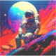 Cet autocollant a un astronaute dessus.