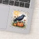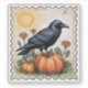 Sticker Autumn Raven on Pumpkin Halloween Postage Stamp
