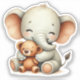 Sticker Baby Elephant Holding Teddy Bear