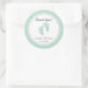 Autocollant rond pour baby shower faveur avec menthe vert bébé pieds design et arrière - plan de polkadot.