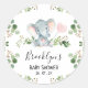 Sticker Baby shower d'éléphant rose Joli baby shower d'éléphant d'aquarelle fille avec un joli éléphant d'aquarelle, un ballon en forme de coeur rose et un feuillage d'eucalyptus. Cet autocollant ou étiquette est idéal pour le baby shower à thème d'éléphant d'une fille.