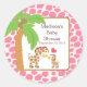 Mignonne bébé safari girafes de jungle Girl Baby shower autocollant. Idéal pour le tag baby shower ! Customisez avec votre invitation baby shower et vous êtes tous prêts à partir ! Des cartes de crédit et des timbres-poste sont disponibles dans notre boutique à l'adresse www.celebrateitinvites.com. ©Zenware Designs