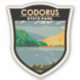OEuvre d'art du parc d'état de Codorus dans un style badge. Le parc a été créé autour du lac Marburg, un lac artificiel, et porte le nom de Codorus Creek, qui forme le lac.