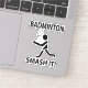 Sticker Badminton Smash It Sports Player conçu par Nisha Prabhu. Préparez-vous à casser vos adversaires sur le terrain de badminton avec cet autocollant amusant et élégant avec un joueur en action. Montrez votre amour pour le sport avec ce design accrocheur qui est parfait pour décorer votre équipement ou personnaliser vos effets personnels. Que vous soyez un joueur décontracté ou un athlète compétitif, cet autocollant est sûr de faire une déclaration où que vous alliez. Alors, préparez-vous, allez à la cour, et cassez-le avec cet impressionnant autocollant de badminton !
