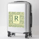 Faites ressortir vos bagages avec ce sticker vinyle élégant ! Conçu pour correspondre à notre valise, sac fourre-tout, étiquette à bagages et porte-passeport, cet autocollant présente un bel arrière - plan crème avec un motif en feuilles vertes. Le carré central vous permet de customiser avec votre initiale et votre nom, ce qui en fait un ajout unique et personnel à votre collection de bagages. Mesurant 14"x14", cet autocollant est assez grand pour tenir sur un coque de bagage et ajoute une touche de personnalité à vos accessoires de voyage. Commandez le vôtre aujourd'hui et voyagez dans le style!