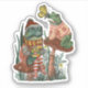 Un adorable cottagecore de Noël autocollants esthétiques avec une illustration peinte à la main d'une grenouille et d'un crapaud portant de laides pulls de Noël et profitant d'une tasse de cacao chaude sur deux champignons.