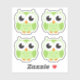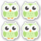 Stickers avec une chouette chouette caricaturale verte. Feuille avec quatre autocollants.