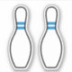 Stickers avec deux épingles blanches de bowling avec bandes bleues et contours noirs.