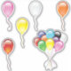 La feuille de 6 autocollants comporte des ballons individuels rose, rouge, jaune, blanc et orange, et une bande de 10 ballons. C'est l'une des deux feuilles de ballons de 6 stickers différentes sur le magasin LDTreasures.