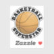 Un autocollant sportif avec un ballon de basket et la phrase 'Basketball Superstar' incurvée autour du ballon. Idée de cadeau géniale pour votre joueur de sport.