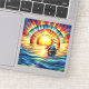 Cet autocollant a un voilier en vitrail illustré dessus.