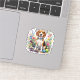 Autocollants avec un Beagle aquarelle mignon debout dans les fleurs avec des jouets pour chien. Un autocollant adorable pour les amoureux des chiens ou les propriétaires de Beagle à coller sur des coques de téléphone, des bouteilles d'eau ou des étuis de tablette.