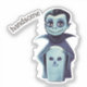 Il s'agit d'un autocollant d'Halloween mignon et personnalisable avec un beau vampire aristocrate debout à côté d'une pierre tombale. Vous pouvez customiser le texte par défaut "beau".